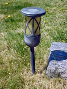 Memory lights are an option interchangeable with the in-ground bronze flower vases. It fits onto a vase base and can be inverted into the ground. A wax candle or an inexpensive flickering battery-operated candle, can be placed inside the red colored plastic shell to provide the light over the gravesite.